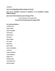 Le FCC conclut en affirmant que ce combat « n’est pas celui d’un individu ni d’un parti, mais celui de tout un peuple pour sa dignité et pour l’avenir de la nation ».Cide